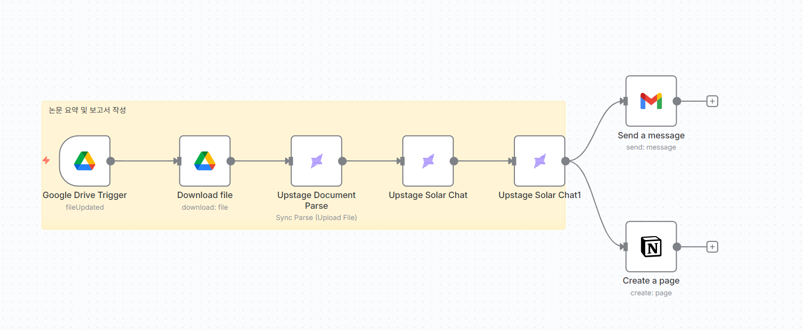 트리거가 실행되면 스크립트가 해당 파일을 Upstage의 Document Parse API로 전송합니다.