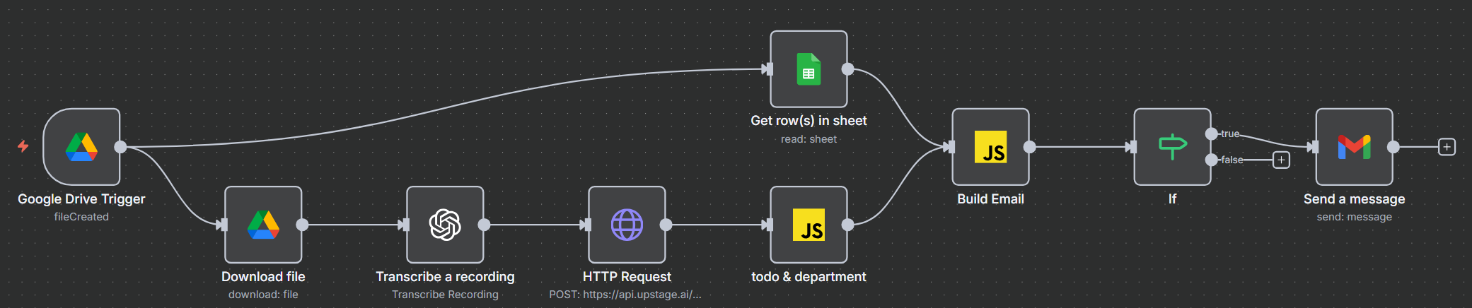 회의 텍스트를 Solar API로 구조화하고 TODO를 담당자 정보와 매핑해 Gmail로 자동 발송하는 엔드투엔드 업무 자동화 시스템이다.