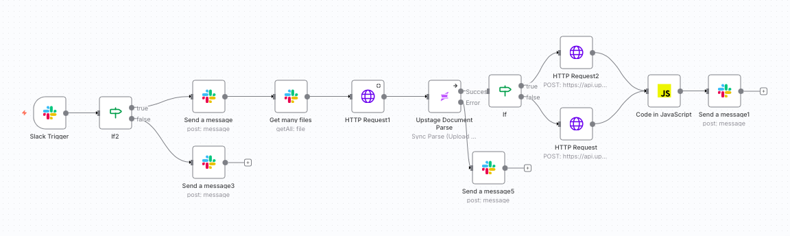 - Slack에 업로드된 PDF, HWP, DOCX 등 다양한 형식의 문서를 n8n이 자동 수집